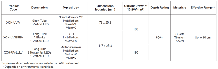 Like all other members of the Xchange suite of products, UV•Xchange is field-swappable and easily configured to fit the needs of any operation. Installed directly on the end cap of an X•Series instrument, the module can be set to various positions, enabling optimal coverage of any sensors requiring protection. By eliminating biofouling induced drift, UV•Xchange allows sensors to perform to their full potential on in-situ instruments. Install UV•Xchange on an AML instrument for a high performance in-situ CTD.