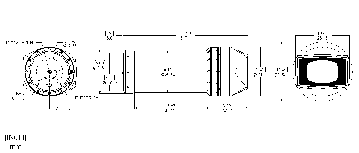 Video uplinks and camera controls are integrated into an embedded telemetry system connected through a single fiber optic interface to a top-side hub that provides industry standard 12G-SDI video and familiar remote camera and lens controls.