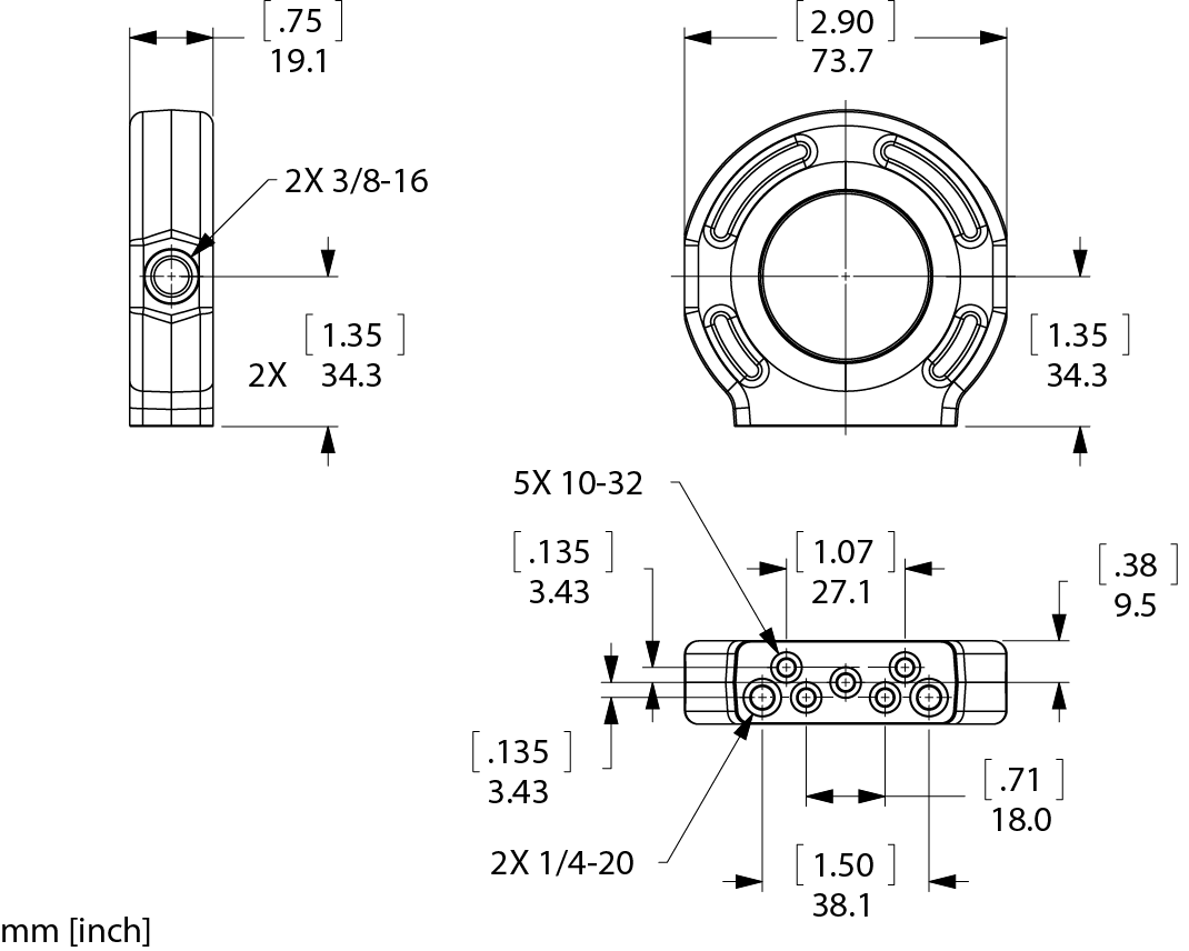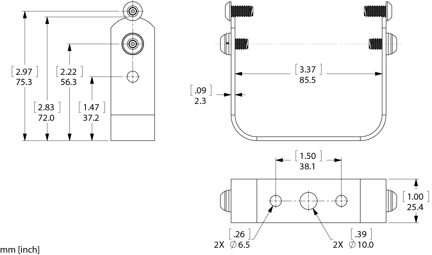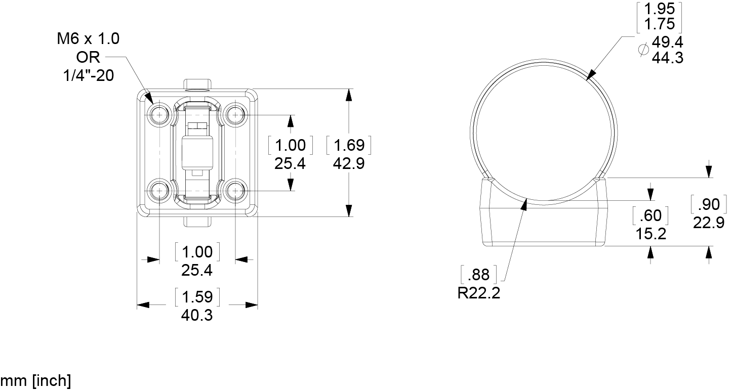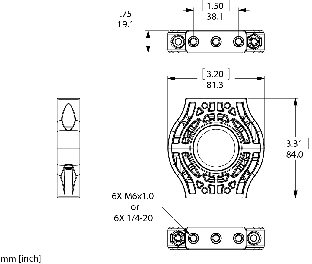 Metric: 2-piece mounting bracket with Titanium 6 mm thread size inserts.