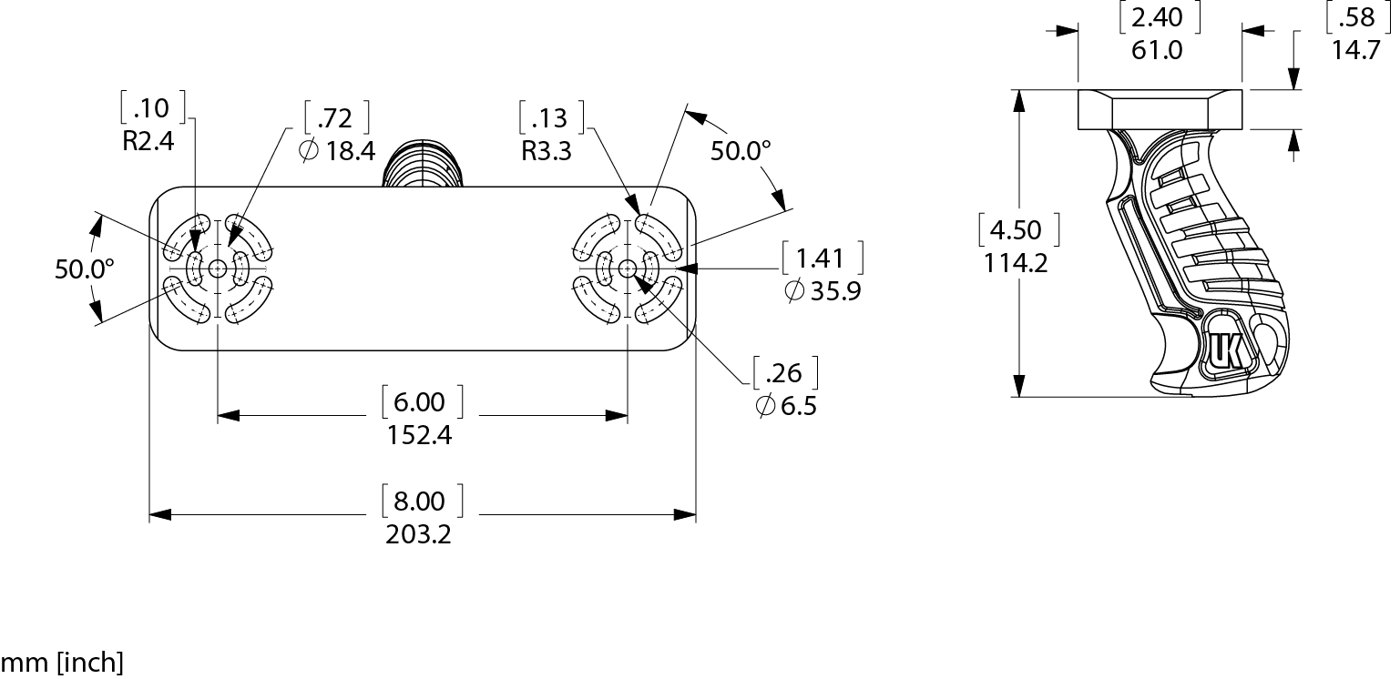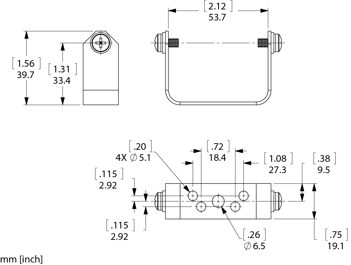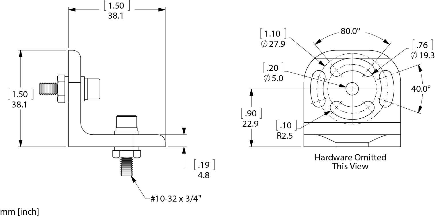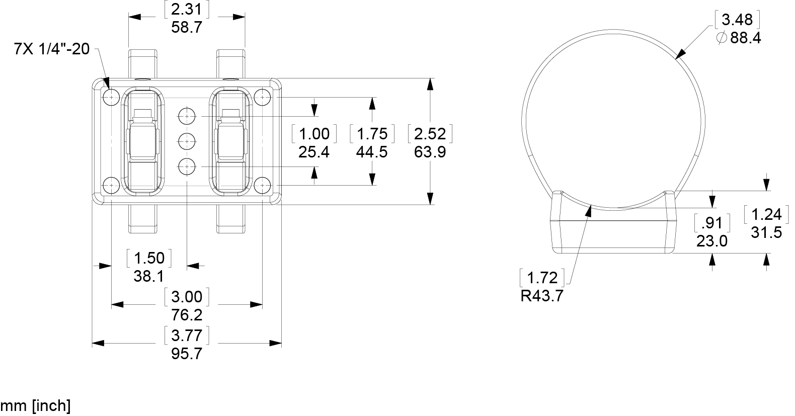 Metric: 2-piece mounting bracket with Titanium 6 mm thread size inserts.