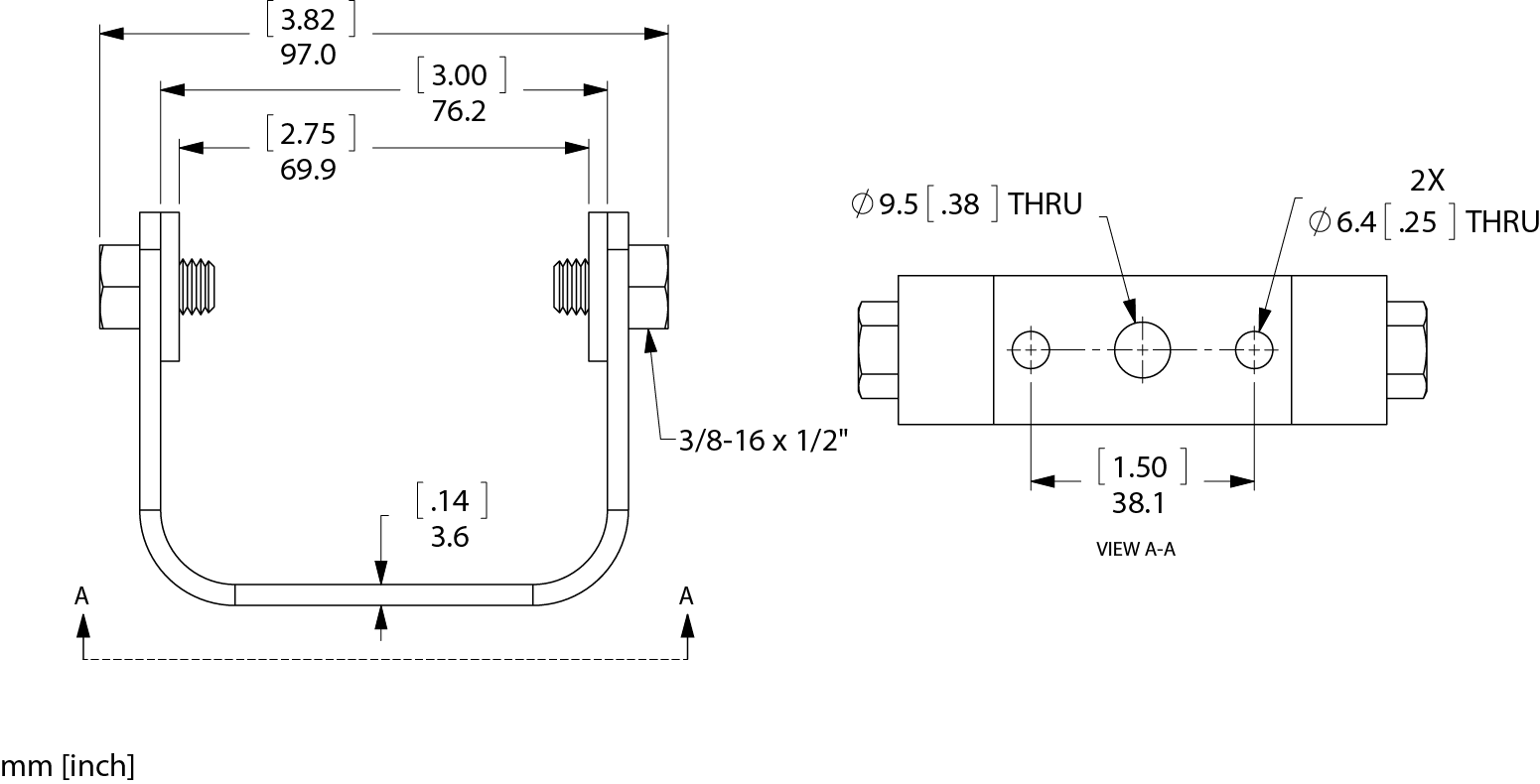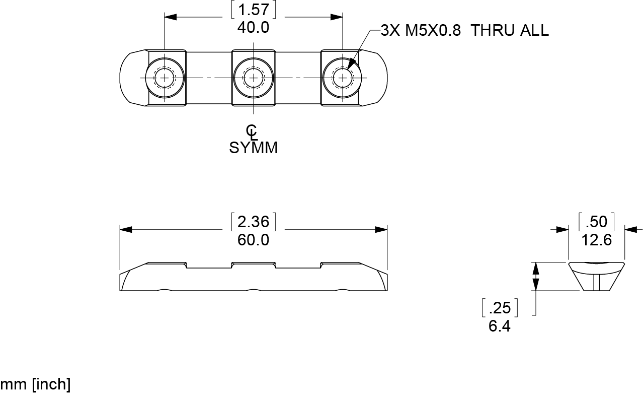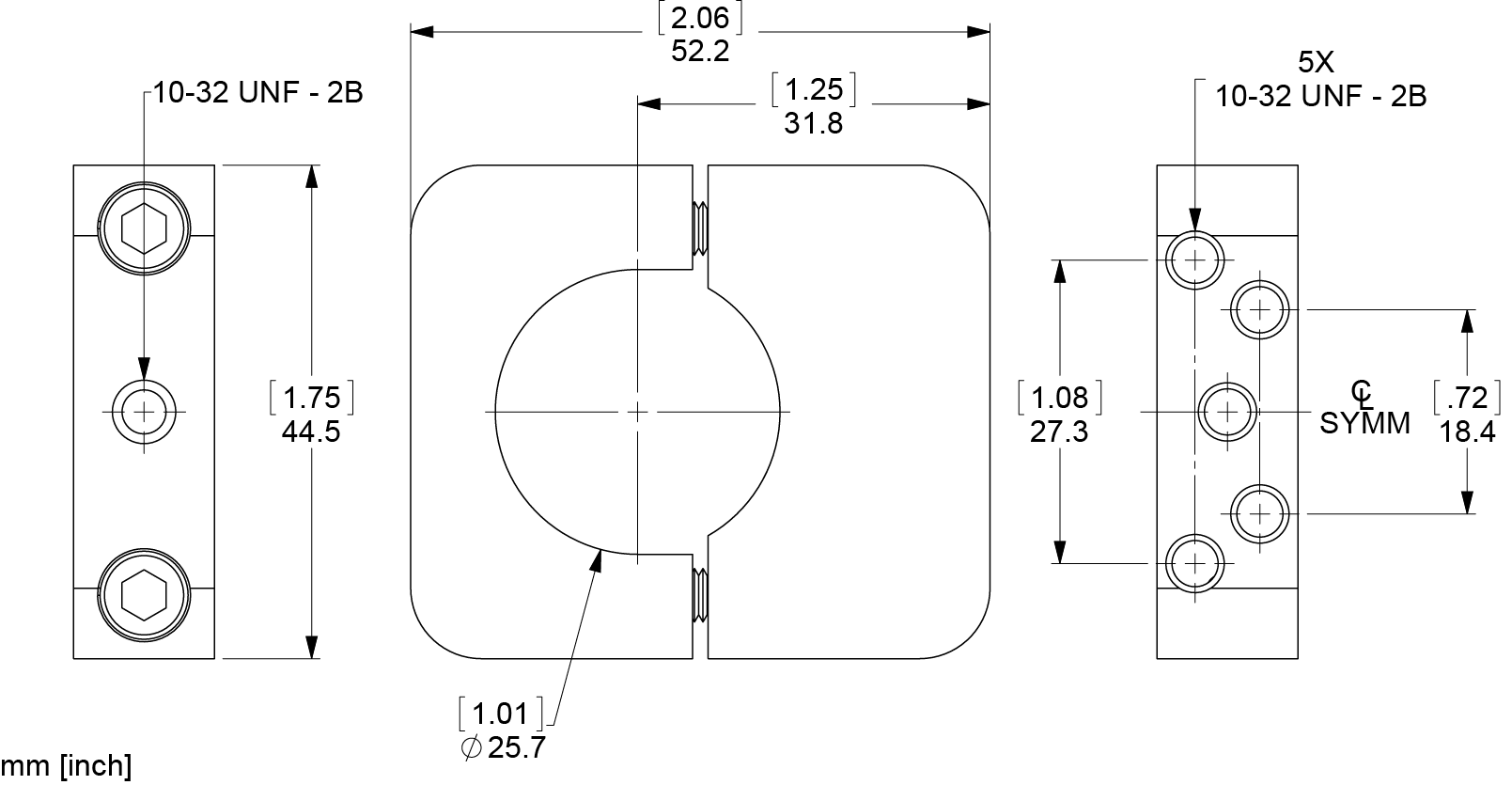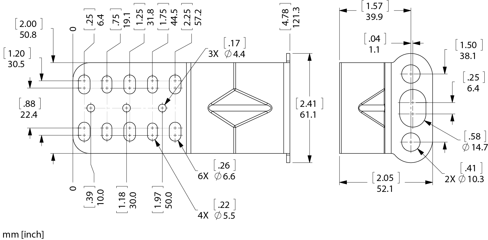Metric: 2-piece mounting bracket with Titanium 6 mm thread size inserts.