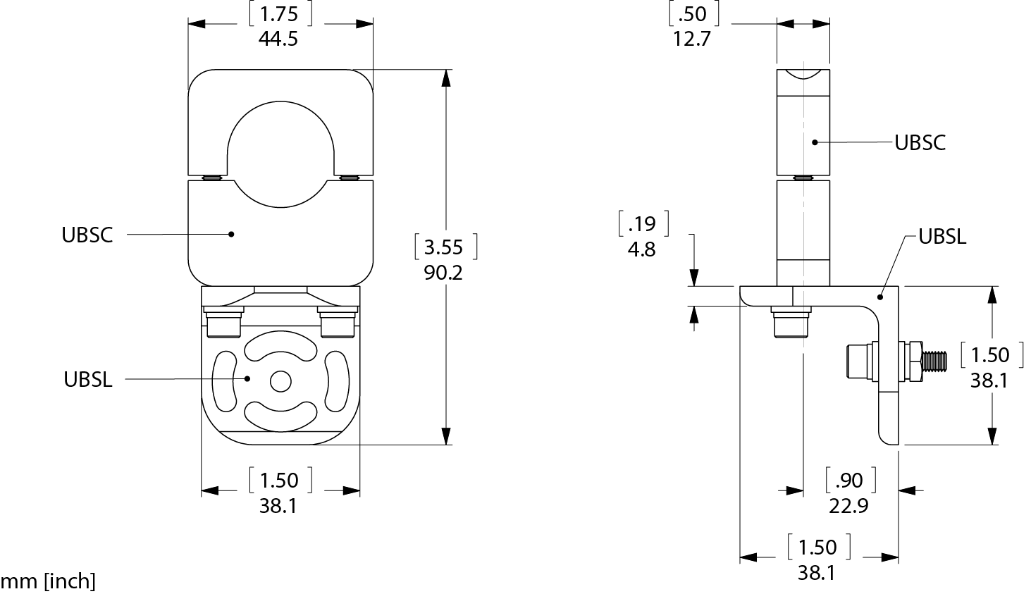 UBS mounting L-bracket, small or large, used in combination with the UBSC bracket.