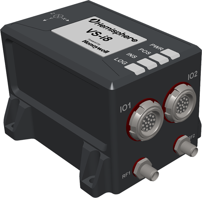 The Hemisphere VS-i8 is a high accuracy, high precision, Inertial Navigation System (INS) product. Featuring Honeywell® proprietary sensor fusion technology, the VS-i8 leverages a powerful multi-frequency, multi-constellation, RTK-ready navigation and positioning solution for a wide variety of GNSS platforms and applications.