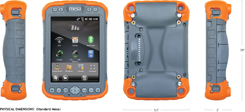 The Mesa is a data collection powerhouse with massive screen real estate, yet still feels like a compact handheld at the end of the long work day. To make life even better, the Mesa comes with a speedy Windows® Embedded Handheld 6.5 operating system that features a custom Juniper Systems finger-friendly onscreen keyboard, plus new GPS and camera enhancements.