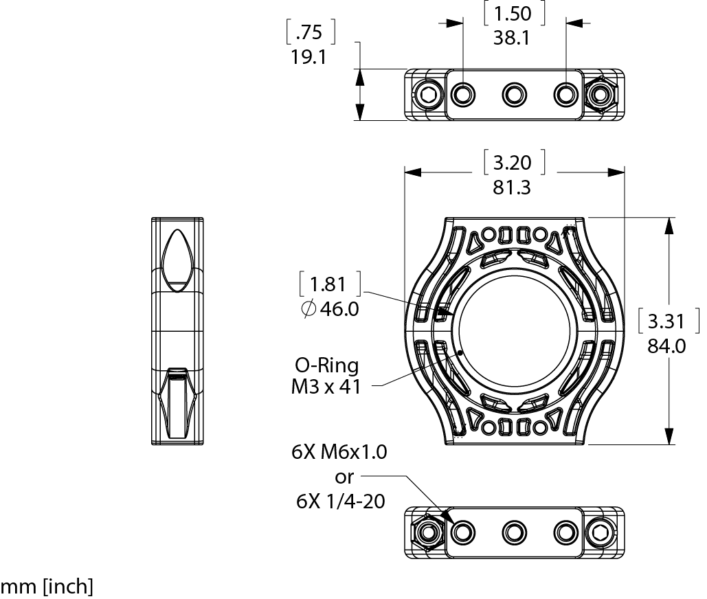 Metric: 2-piece mounting bracket with Titanium 6 mm thread size inserts.
